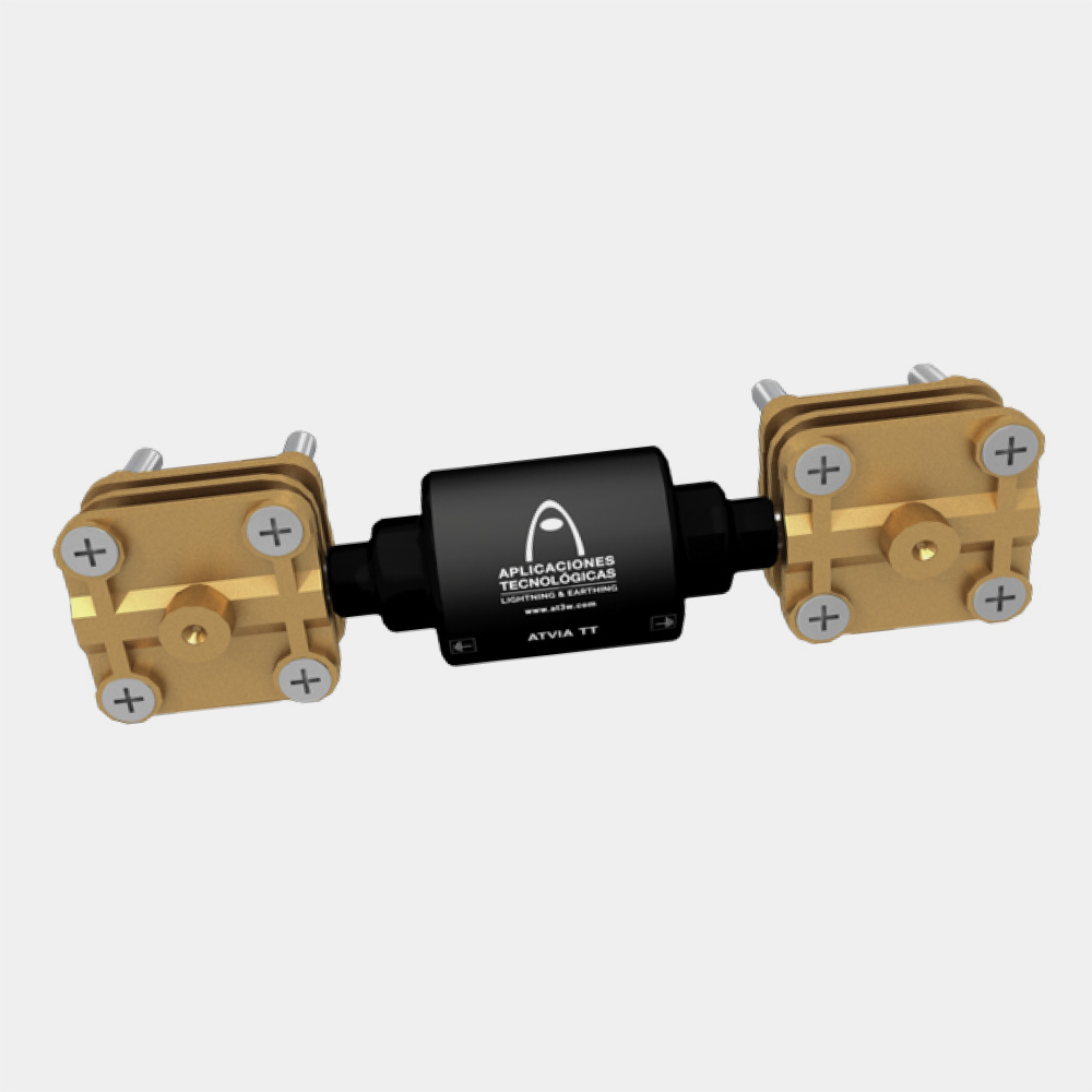 AT-050K is the most appropriate means of joining the different earth connections when this connection cannot be made directly as, for example, it may cause corrosion problems. When a discharge occurs and the voltage increases in the earth connections, the spark gap will activate, directly joining the earth connections and thus preventing current passing from one to another another through equipment or internal installations.